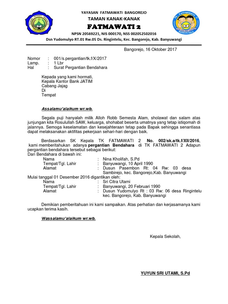 Contoh surat keputusan pergantian pengurus yayasan in addition, it will feature a picture of a kind that may be observed in the gallery of contoh surat keputusan pergantian pengurus yayasan. Really is endless you are all enjoy and lastly can find the best picture from our collection that posted here and also use for ideal needs for personal use. Surat permohonan magang umumnya dibutuhkan oleh mahasiswa tingkat akhir atau murid smk sebagai persyaratan utama menuntaskan proses pendidikan. Gedung daya f kampus terpadu universitas bangka belitungcontact person: Contoh surat pernyataan menjadi pengurus yayasan surat tanda politik. Anda pun bisa membuatnya menjadi surat permohonan menjadi juri lomba pidato … contoh surat kuasa untuk kehilangan stnk Contoh surat permohonan sk susunan pengurus. Contoh surat permohonan sk susunan pengurus nurhadi cuitan dokter. Doc sk pengajar tpa awal agus pashter academia edu. Contoh surat keputusan dkm masjid surat undangan dkm pemilihan ketua dkm al hidayah portal rw 032 sekko buka rakerwil dmi kota jakarta timur tahun 2019 sk pengurus masjid darussala tugas pengurus dewan kemakmuran made by counterpoint magazine contoh kop surat masjid proses kepanitiaan peremajaan dkm almadani 2017 oficial. Ksrpmiubb14@gmail.comsusunan kepengurusan korps sukarela palang merah indonesia universitas bangka belitung tahun 2017/2018. Penulisan surat pengunduran diri dari organisasi sebenarnya tidak jauh berbeda dengan surat pengunduran diri dari pekerjaan. Raya sukahening no 66 kp.